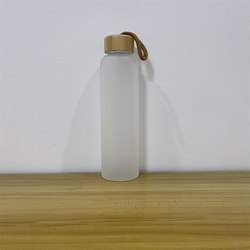 غطاء مصنفر من الخيزران ، زجاجة مياه التسامي الزجاجية مع حزام المقبض