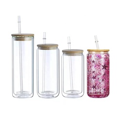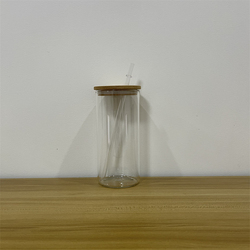 Vaso de sublimación de vidrio de borde plano transparente en blanco de 20oz con tapa de Bambú