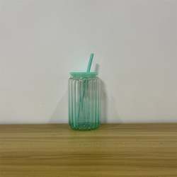 16オンスブランク昇華ガラスタンブラーの内側に縞模様のグリーンオンブルプラスチック蓋