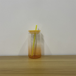Blank Clear Yellow Ombre 16oz Ombre Glass Sublimation Tumbler Com Tampa Plástica