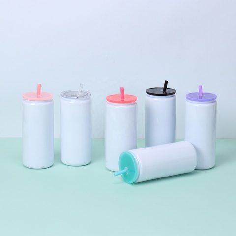 Aço inoxidável Glossy White 16oz Sublimação Tumbler Latas Com Tampas De Plástico