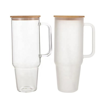 Clear/Frosted 40oz Glass Sublimation Tumbler Com Alça