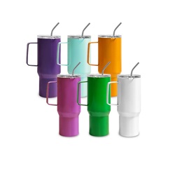 Outdoor Leakproof 40oz Sippy Straw Lid Vaccum Isolado Aço Inoxidável Viagem Tumbler Com Alça